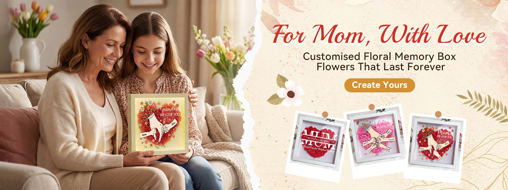 Mom Gift We Love You - Personalized Flower Shadow Box