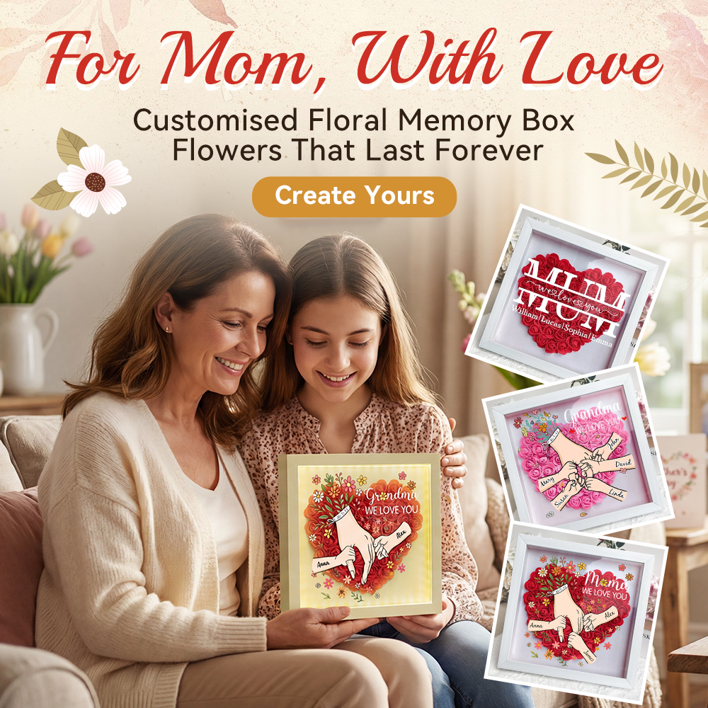 We Love You Mom Hand Holding - Personalised Mom & Grandma Flower Shadow Box with Names